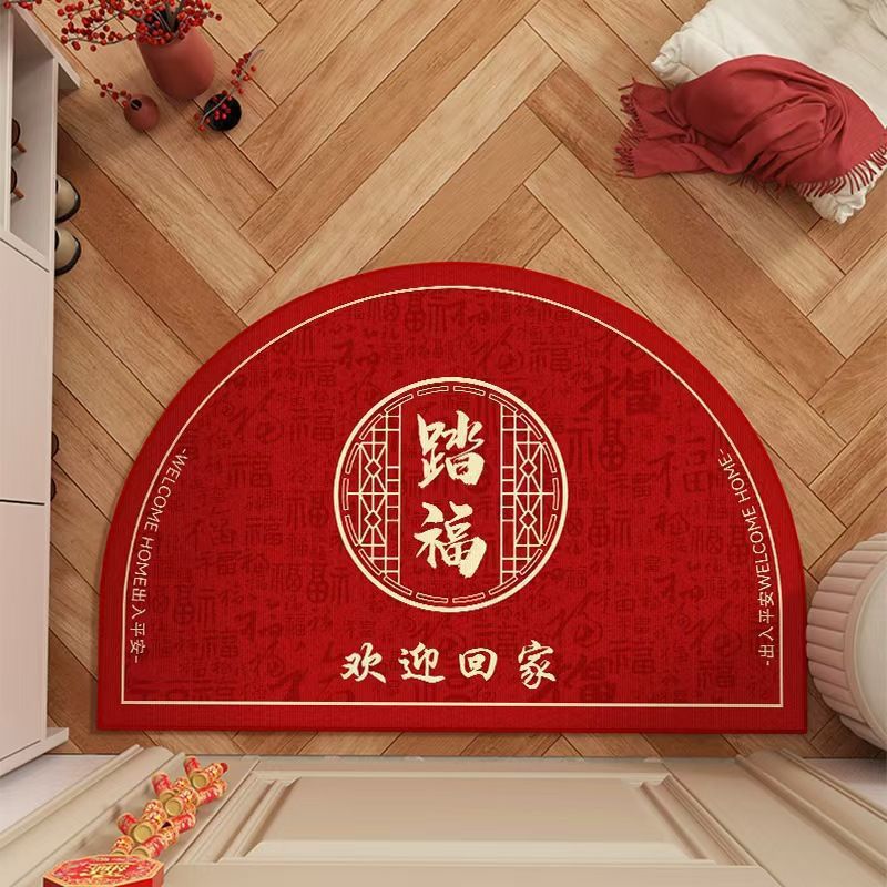 红色玄关门垫乔迁新居吉祥地垫吸水防滑好打理水晶绒地垫新年脚垫
