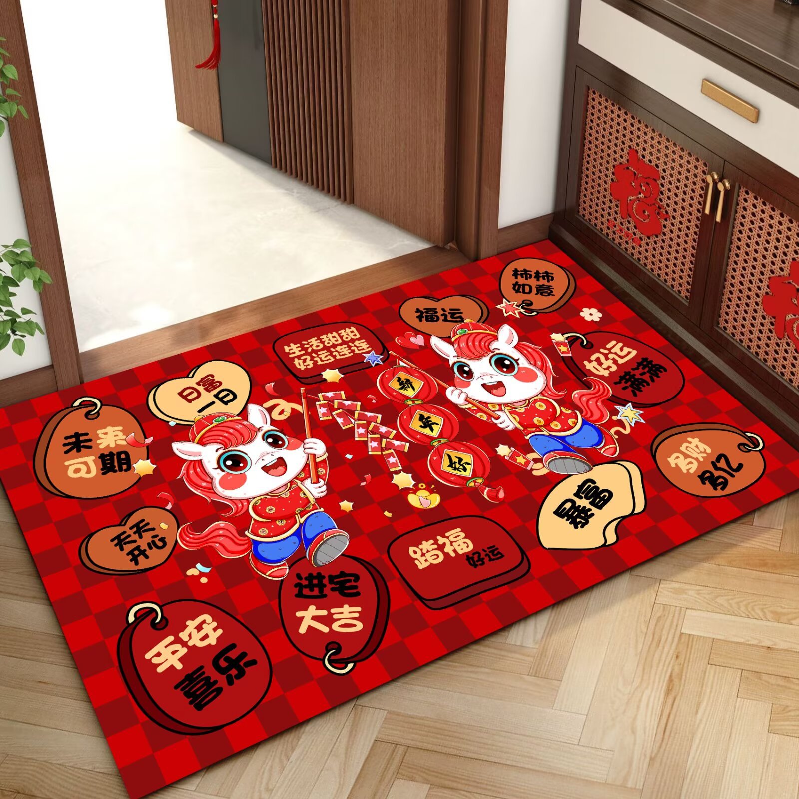 新年玄关门垫吸水防滑耐脏水晶绒脚垫2026马年入户门垫结婚地垫