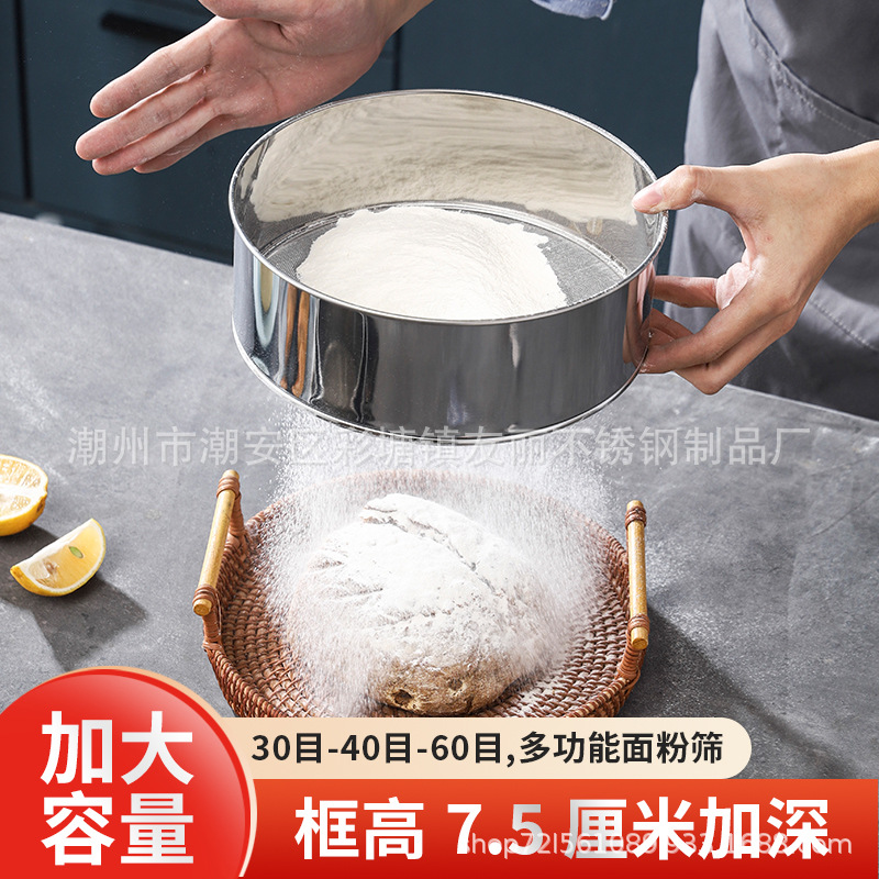 30/40/60目不锈钢过滤网筛子手持面粉筛超细家用小罗烘焙工具筛网