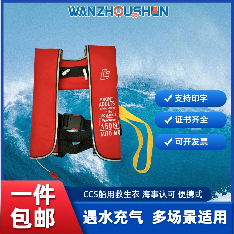 船用成人便携式气胀式救生衣CCS自动遇水充气马甲大浮力路亚背心
