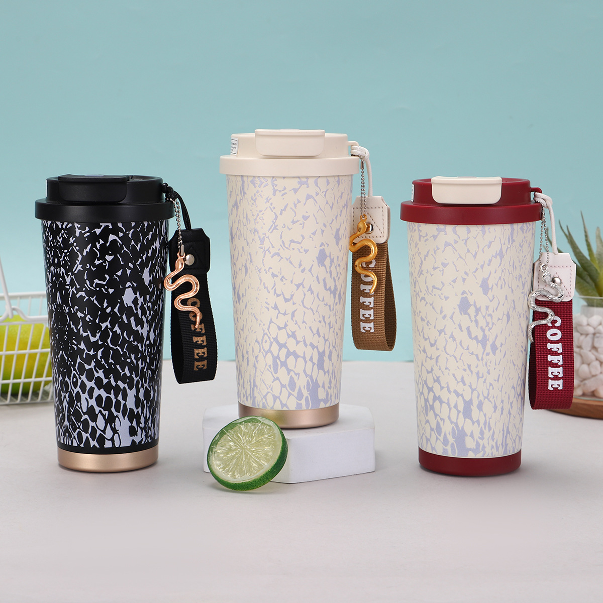 蛇年新款316不锈钢双饮保温杯高颜值灵蛇挂件铃兰杯带提绳咖啡杯