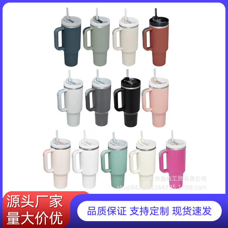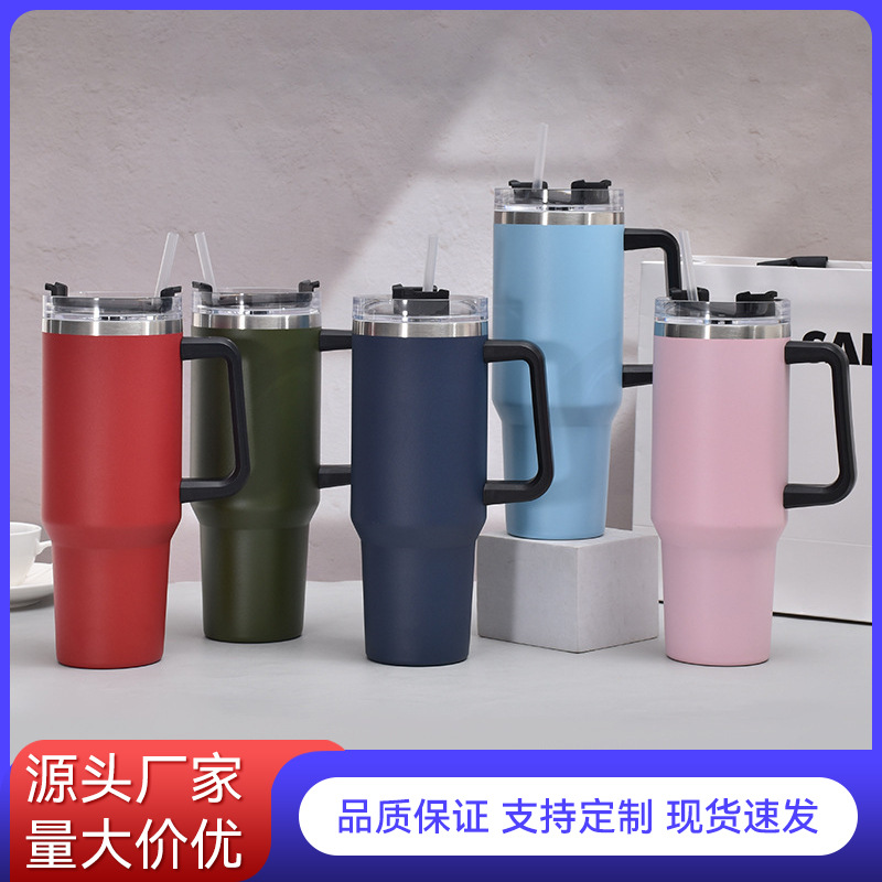 严选40oz大容量不锈钢汽车杯双层保冷便携冰霸杯带手柄吸管保温杯