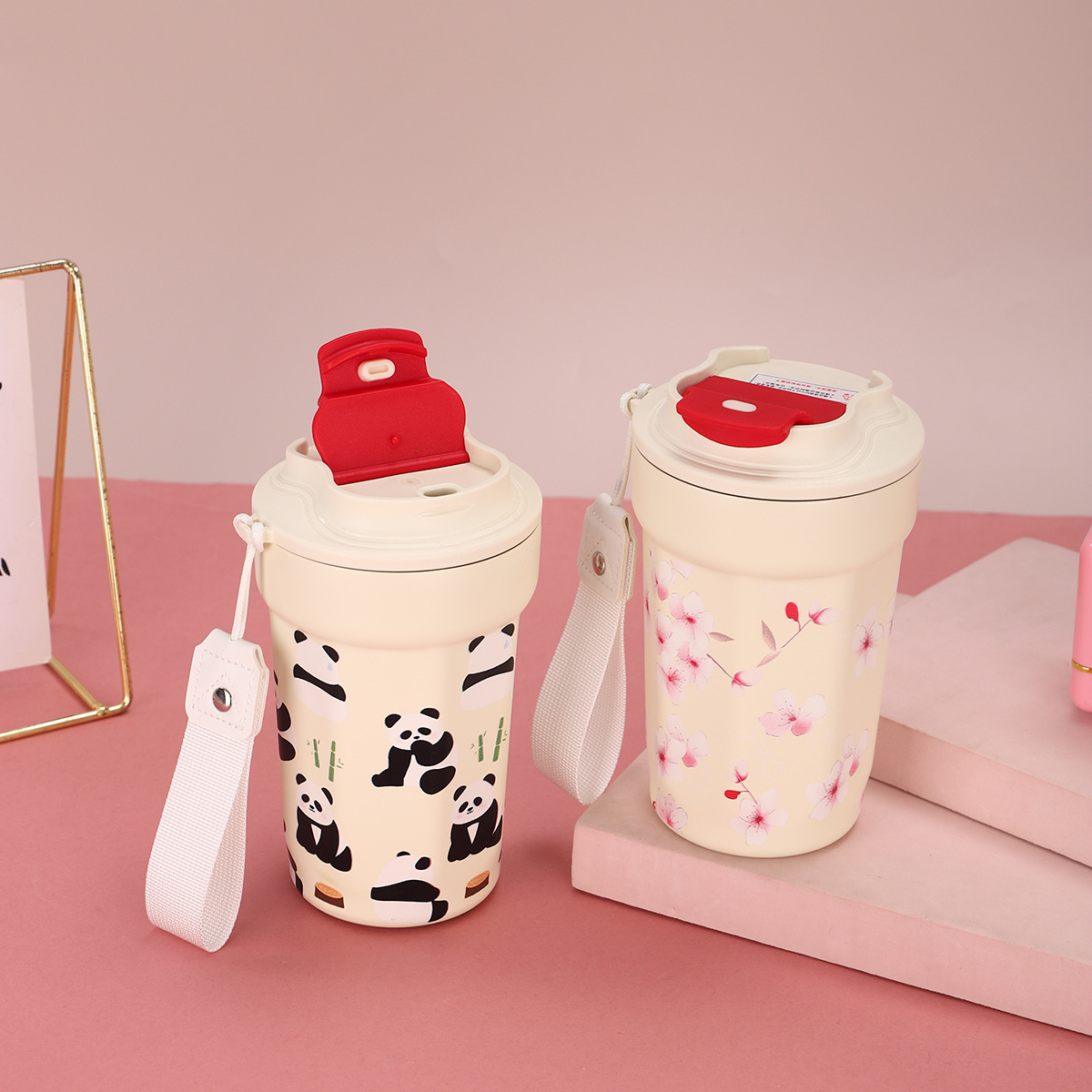 日式简约304不锈钢牛奶杯可爱大容量保温杯户外便携带提绳礼品杯