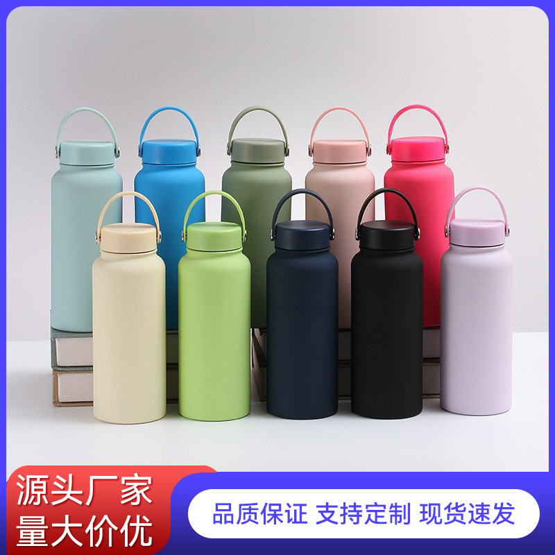 新款跨境304不锈钢橡胶漆工艺太空壶大容量便携式提手运动水壶