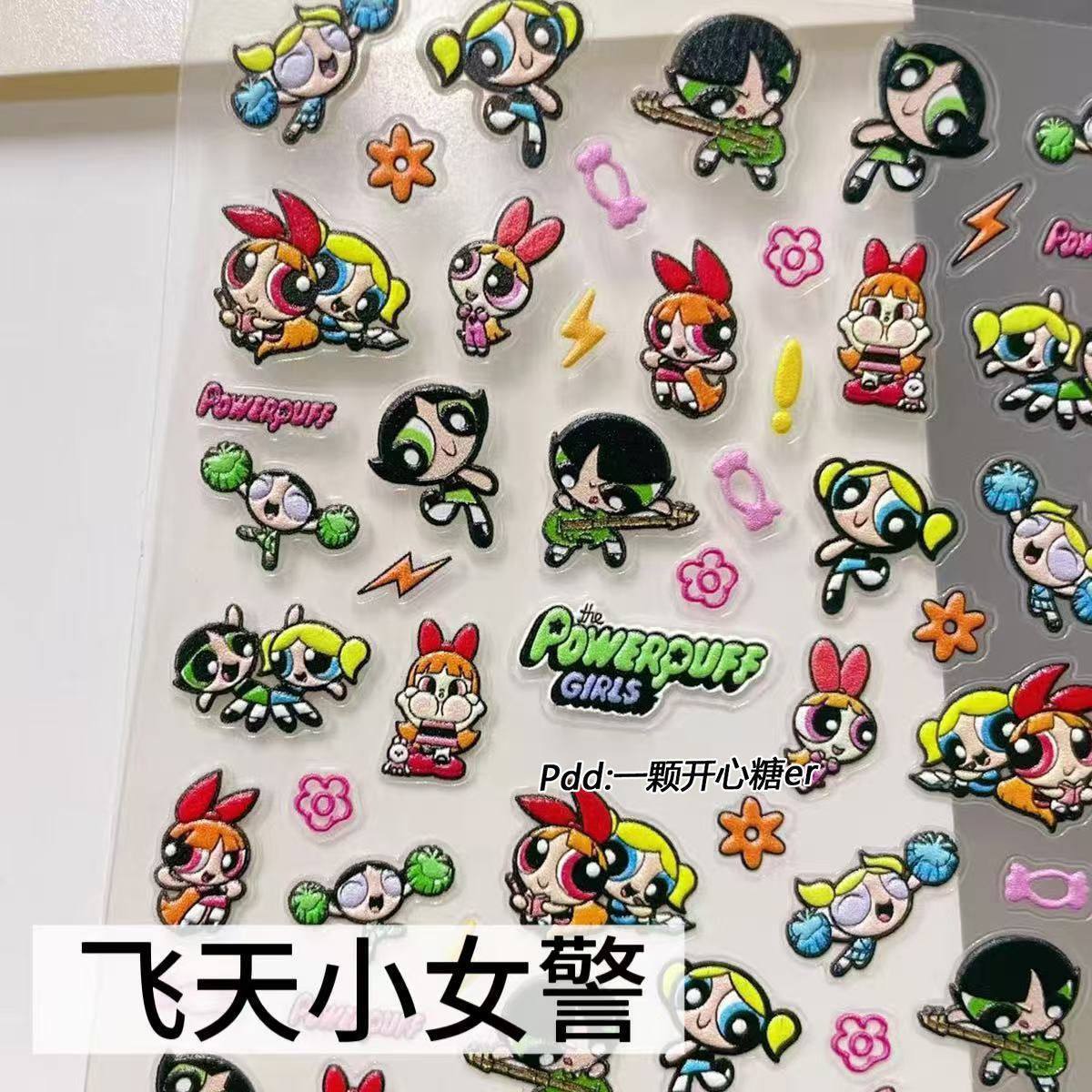 可爱日系飞天小女警贴纸立体浮雕美甲贴纸手机壳diy指甲防水装饰