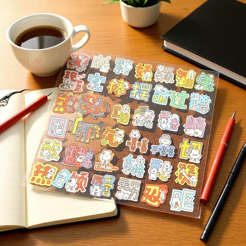 新款心情文字平面贴纸悲伤害怕失眠情绪盒子日记DIY手机贴纸批发