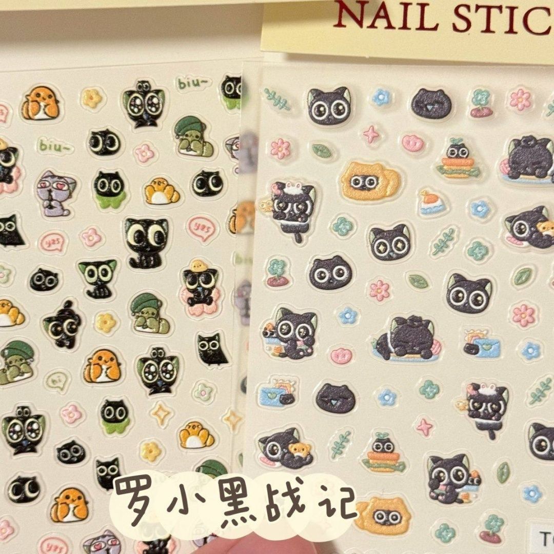 可爱超萌罗小黑战记美甲贴纸浮雕立体大眼猫咪手账平板diy指甲ccd