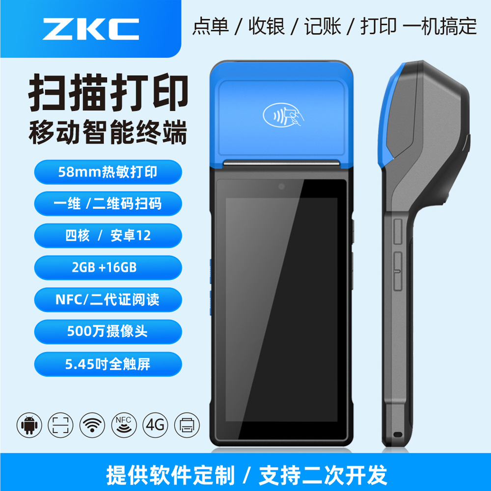 5.5寸全屏2+16G安卓12扫码+58打印小票不干胶标签NFC手持终端PDA