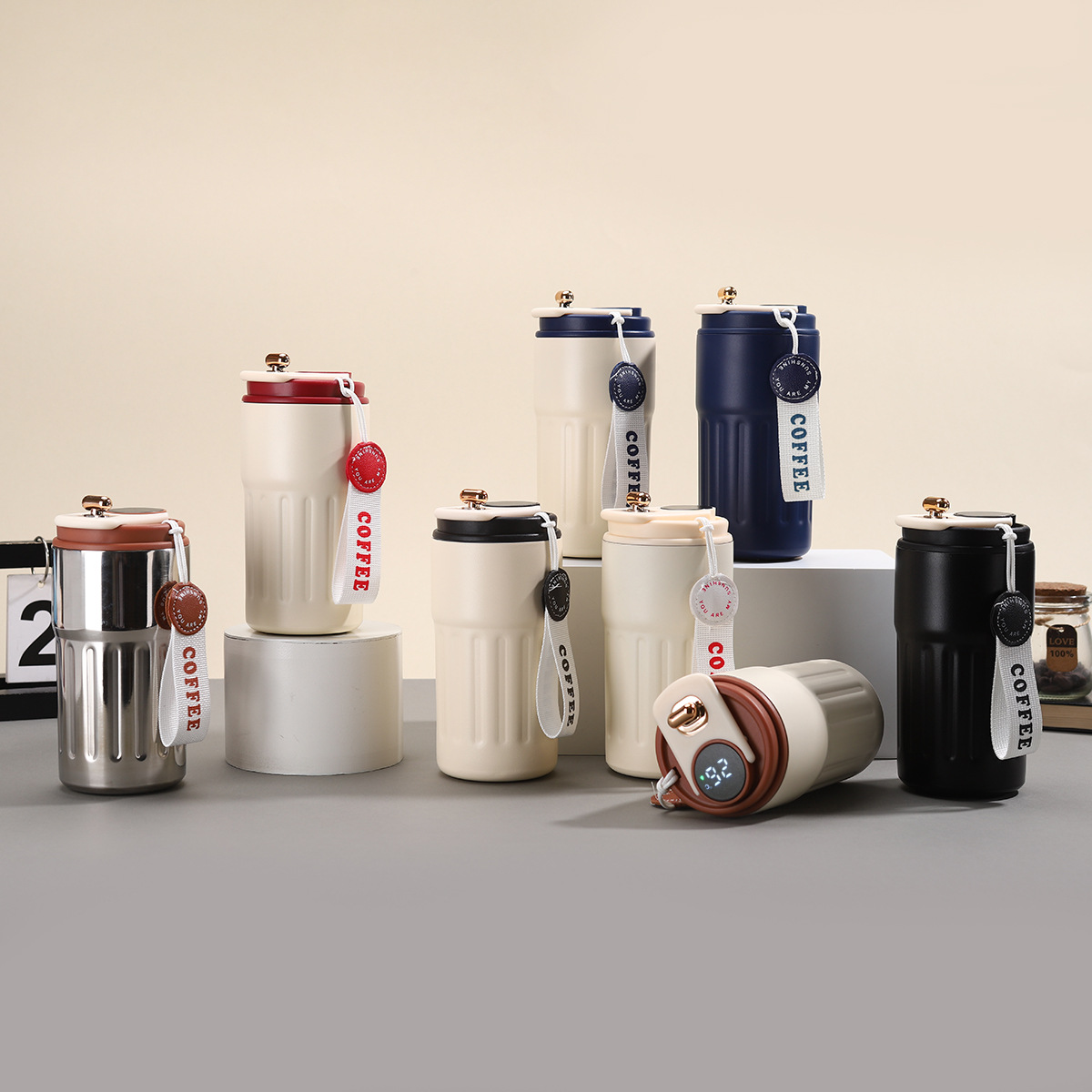 咖啡保温杯显温礼品保温水杯高颜值便携随行杯简约新款不锈钢杯子