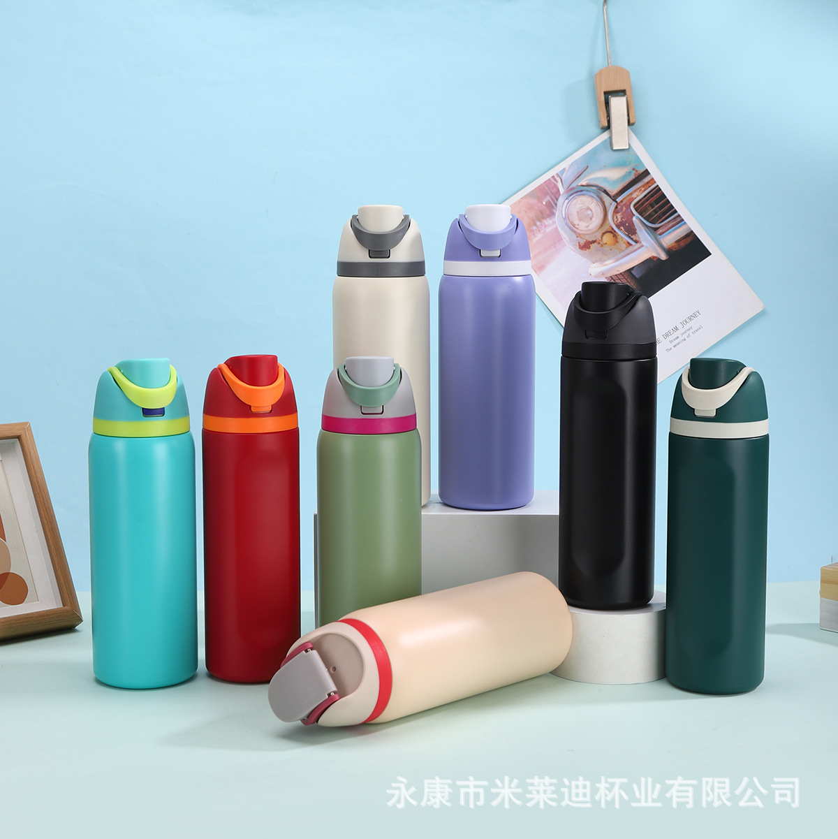 跨境新品高颜值弹跳杯不锈钢保温杯户外运动水杯提手双饮水果杯