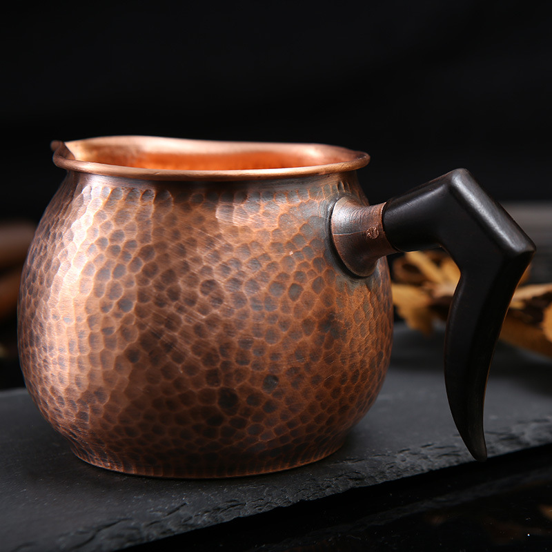 厂家侧柄鹰嘴小口茶杯轻奢办公商务礼品杯手工锤纹紫铜公道杯定制