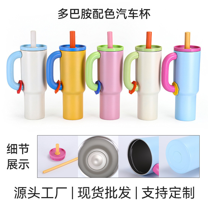 跨境304不锈钢手柄汽车杯双层真空大容量保温杯马卡龙色系冰霸杯