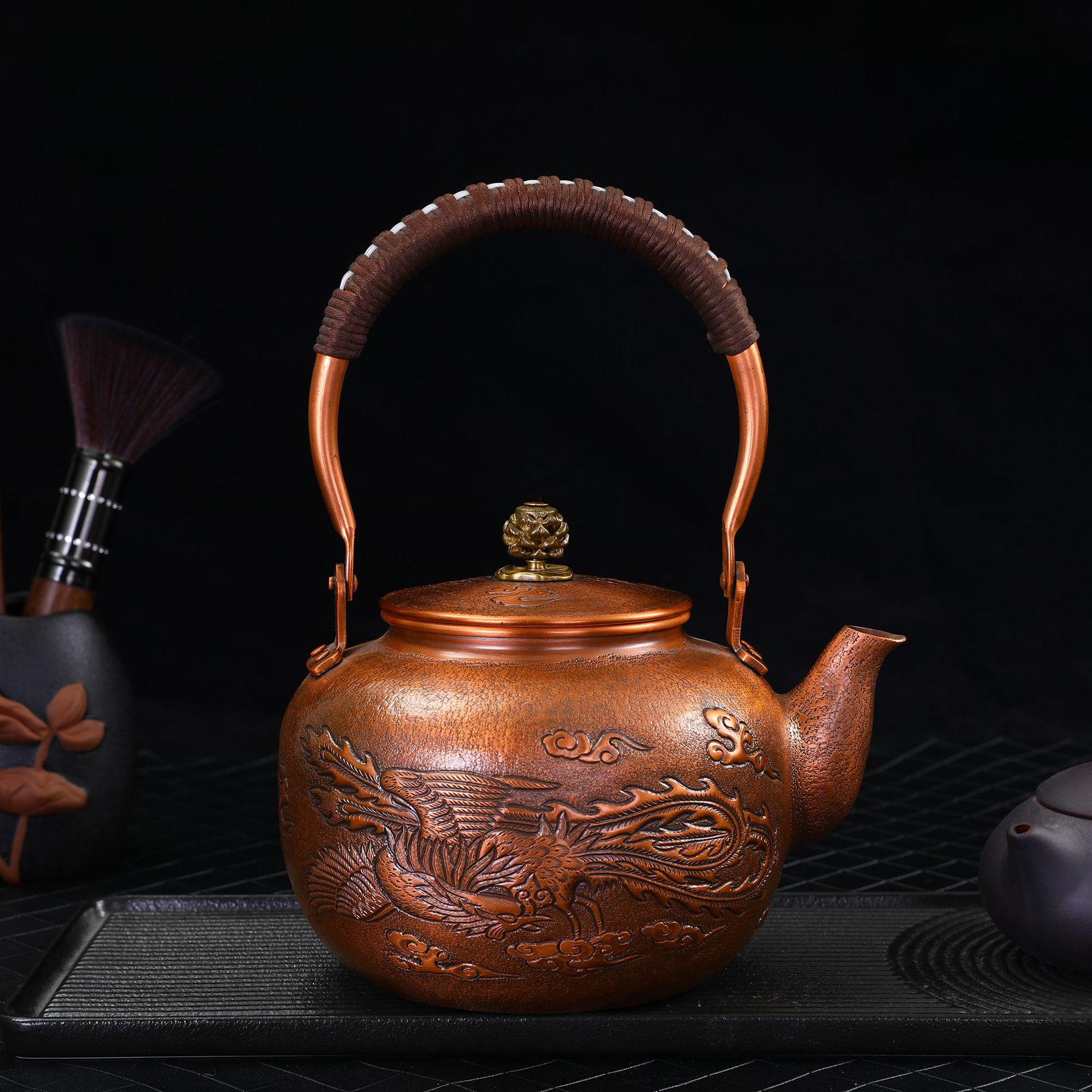 严选刻花心经烧水茶壶办公复古紫铜壶个性家用礼品泡茶壶高档礼品