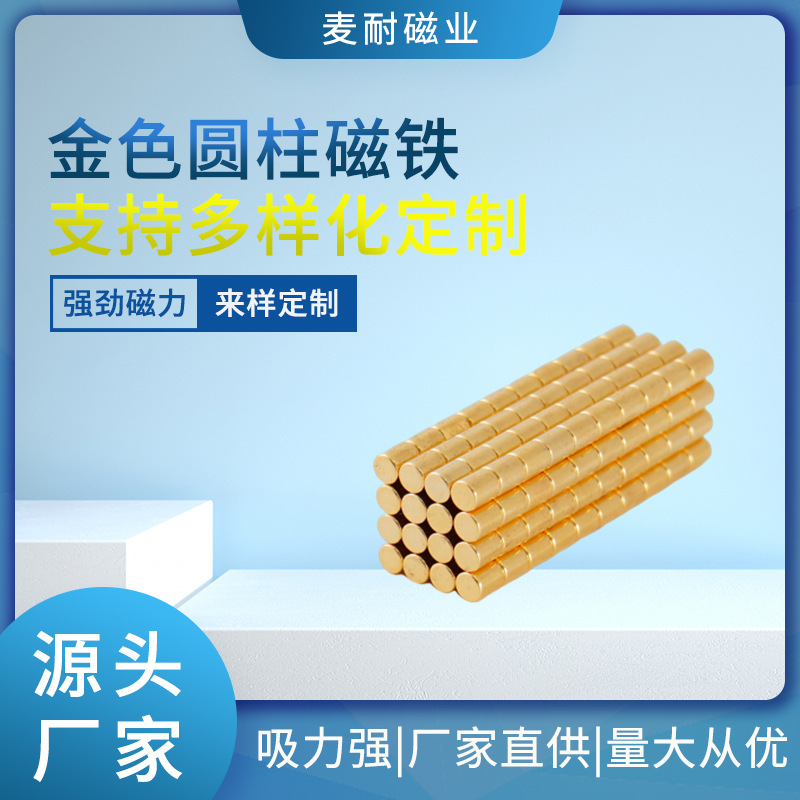 厂家供应镀金圆柱强力磁铁磁力吸铁石金色磁铁钕铁硼磁钢强磁磁性