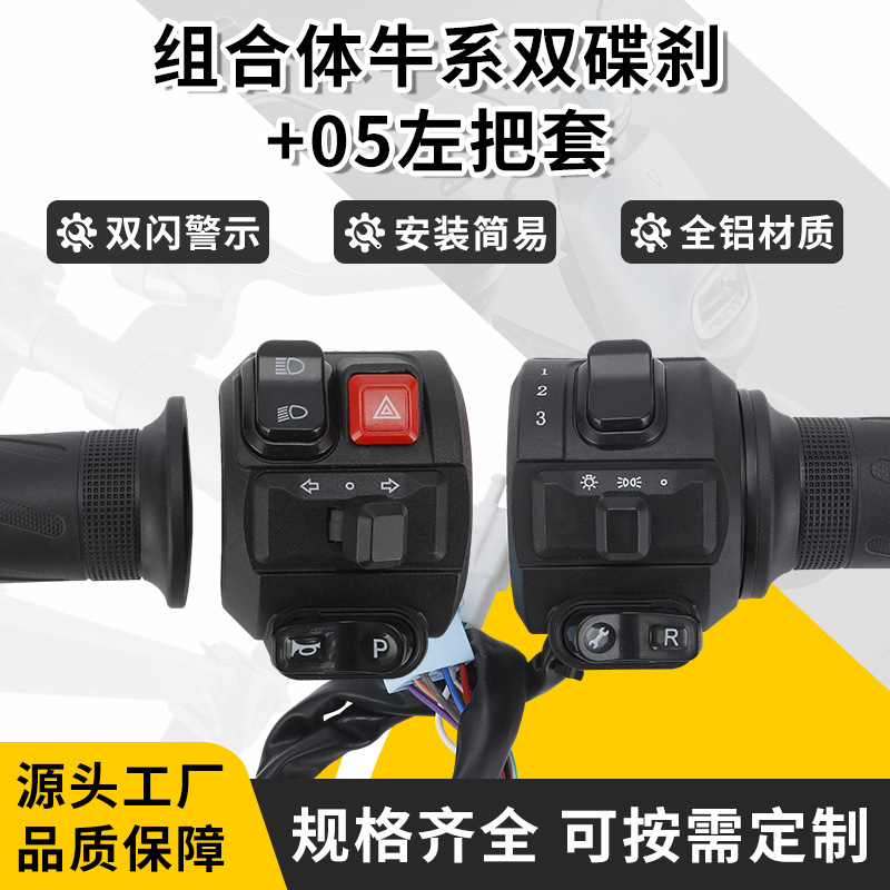 电动车组合开关适用于牛系双碟刹+05左把套喇叭大灯组合开关