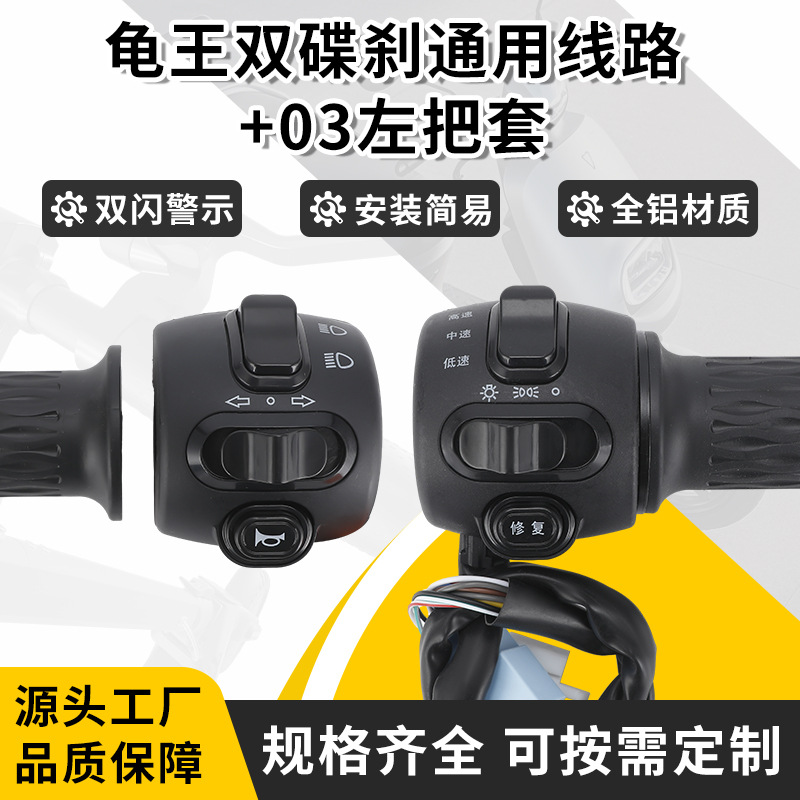 电动车组合开关适用于龟王双碟刹通用线路+03左把套