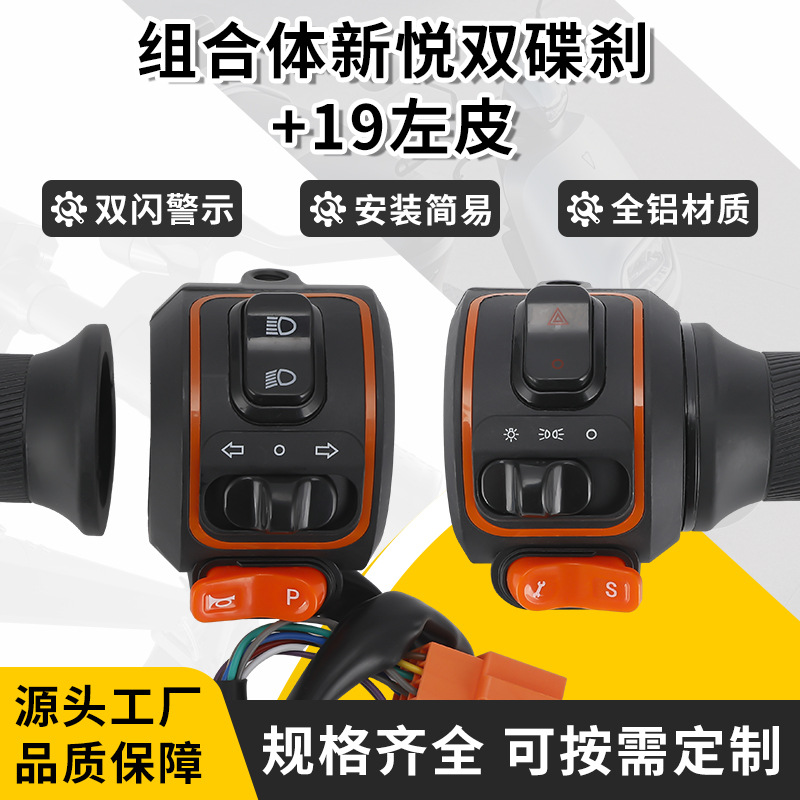 电动车组合开关新悦双碟刹+19左皮转把总成喇叭大灯组合开关