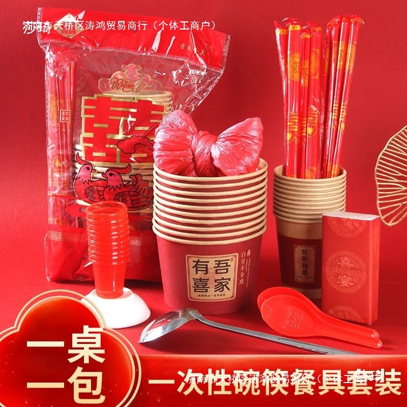 一次性碗筷餐具套装红色办酒席结婚宴席家用婚庆餐具一整套碗华庚
