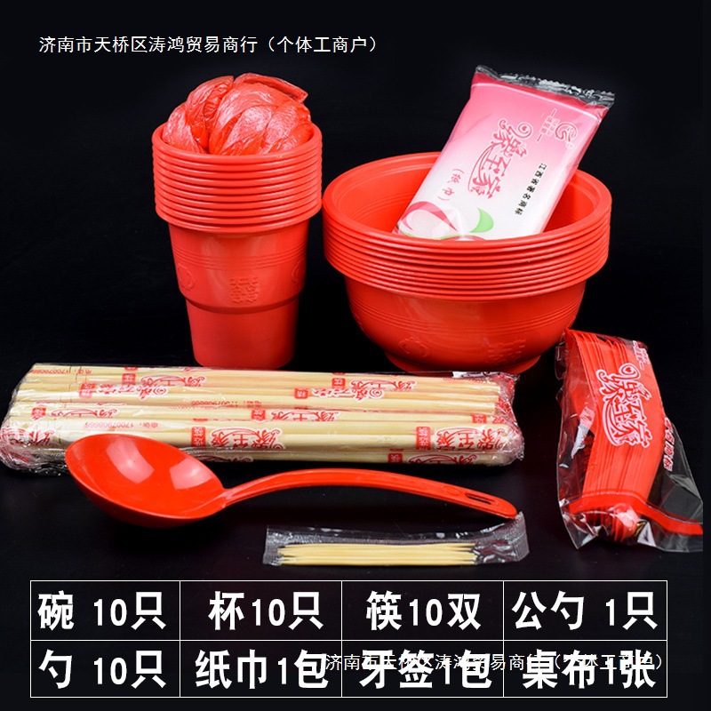 一次性碗筷餐具套装红色结婚宴席家用餐具组合碗杯10人份