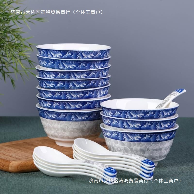 青花瓷饭碗4/6/10只 创意陶瓷饭碗面碗汤碗餐具可微波炉日式泉熔