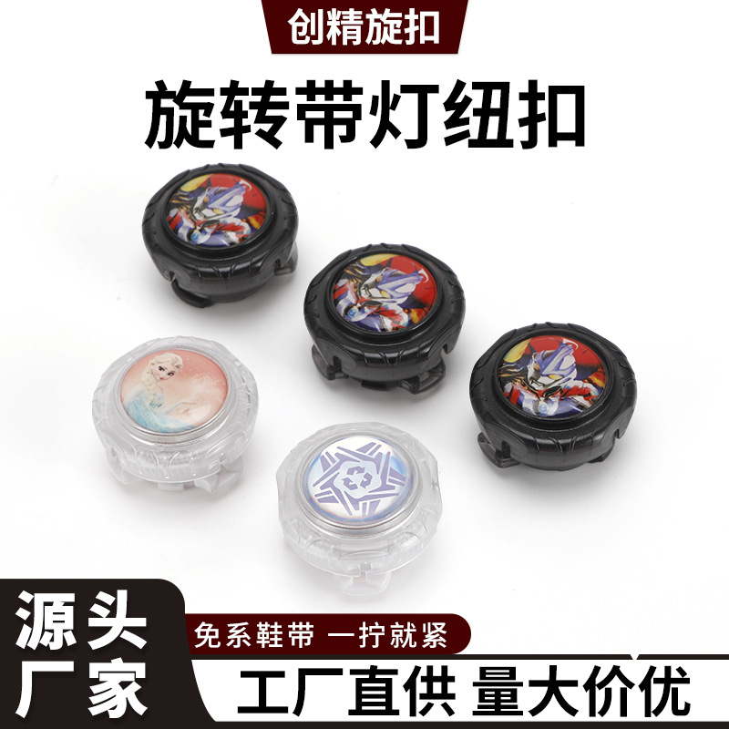 卡通带灯旋转纽扣钢丝鞋扣儿童运动鞋足球鞋配件懒人免系鞋带