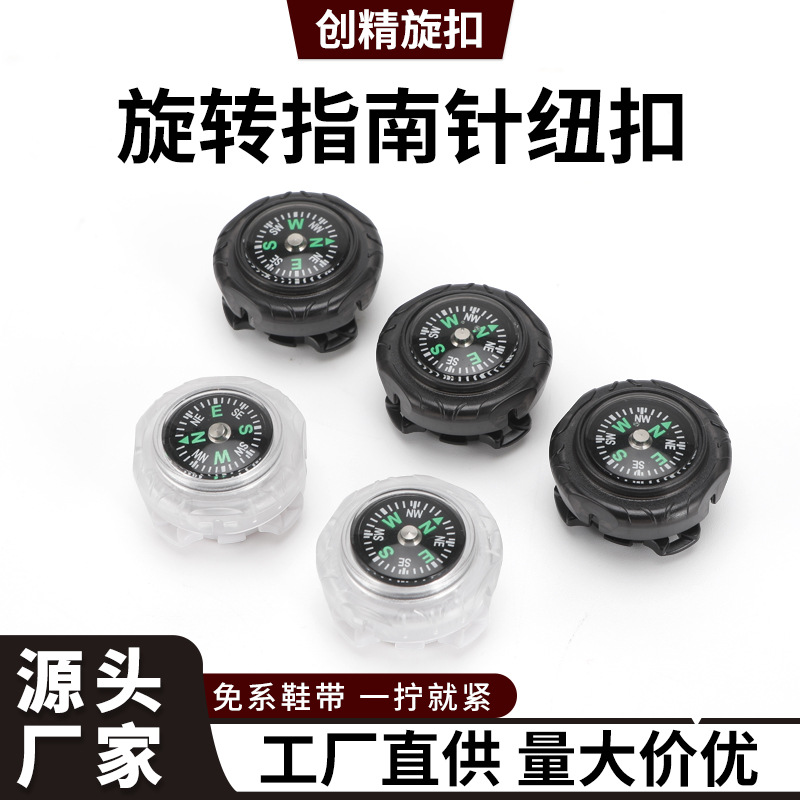 带指南针旋转纽扣 懒人免系运动跑鞋钢丝绳旋钮鞋扣免绑固定器