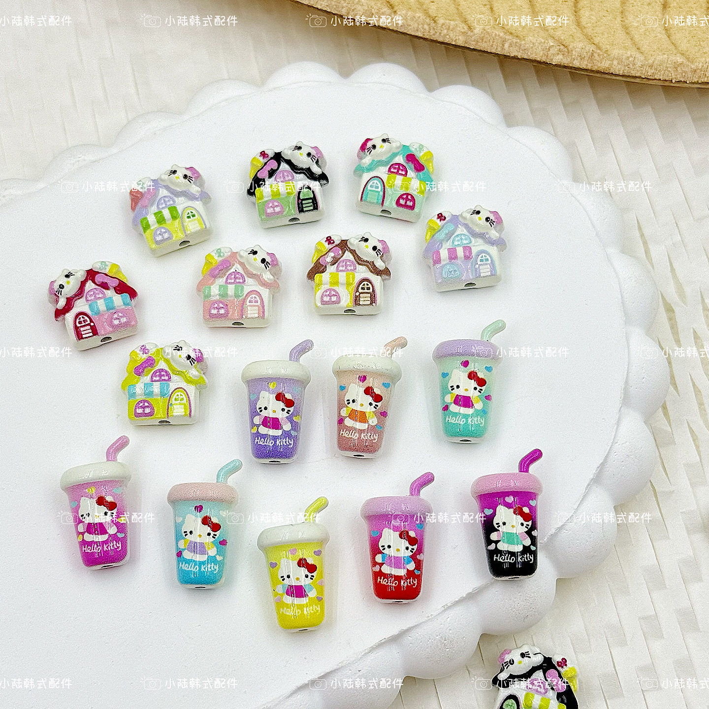 卡通可爱印刷奶茶房屋烤漆合金串散珠手机链项链吊坠发夹饰品配件