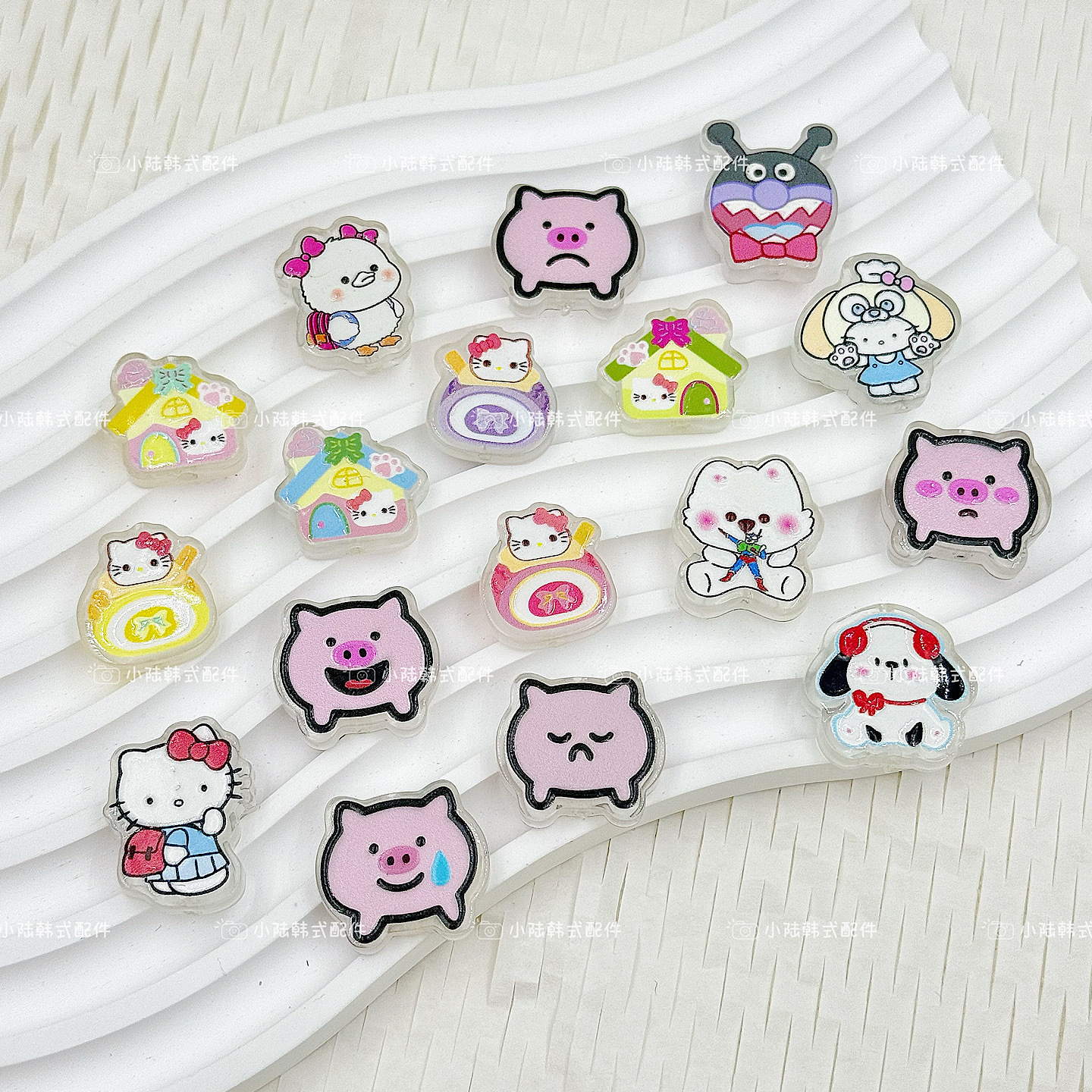 卡通可爱小猪凯蒂猫印刷亚克力diy串珠散珠手机链项链发饰品配件