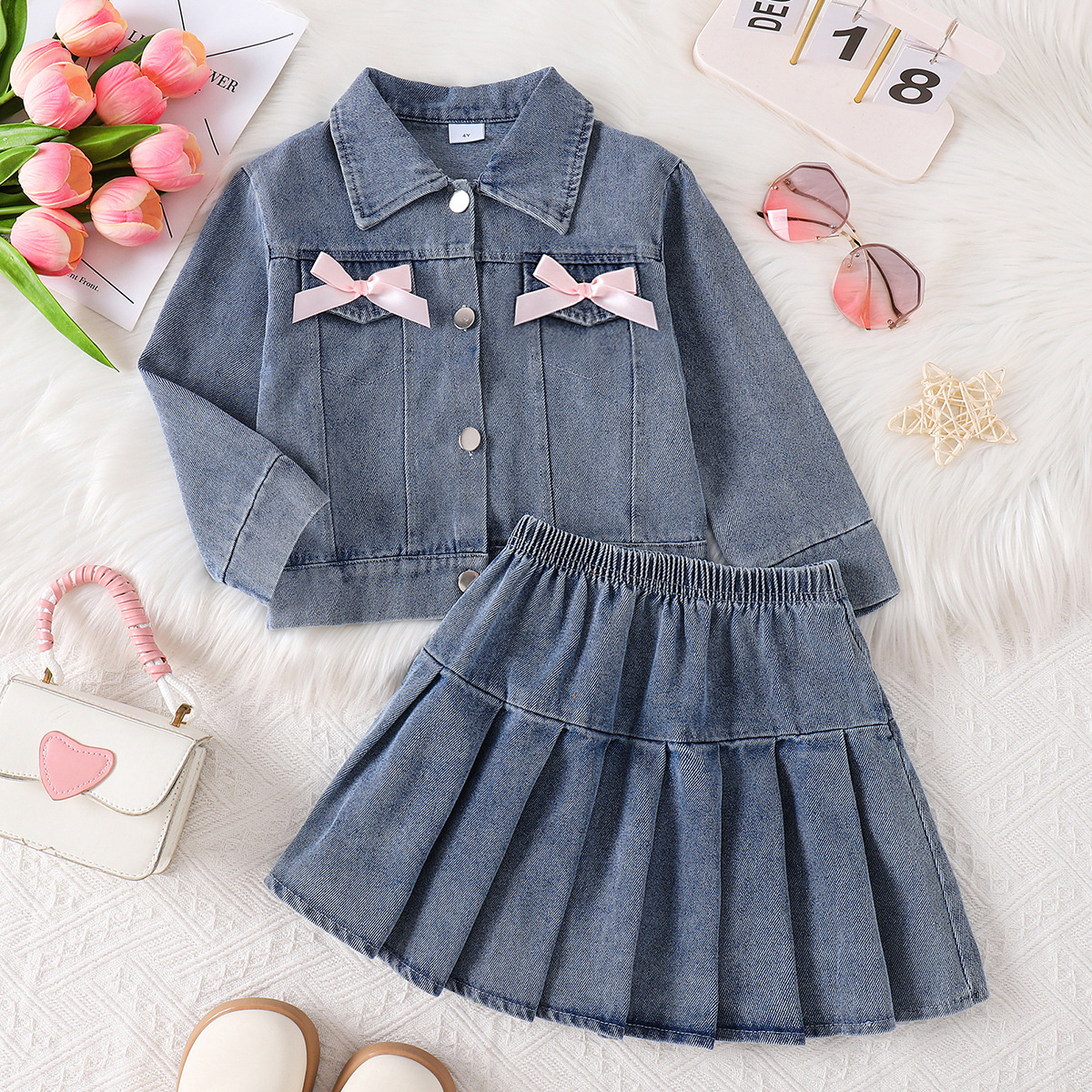 跨境新款女童春秋装新款洋气牛仔套装牛仔外套半身短裙两件套