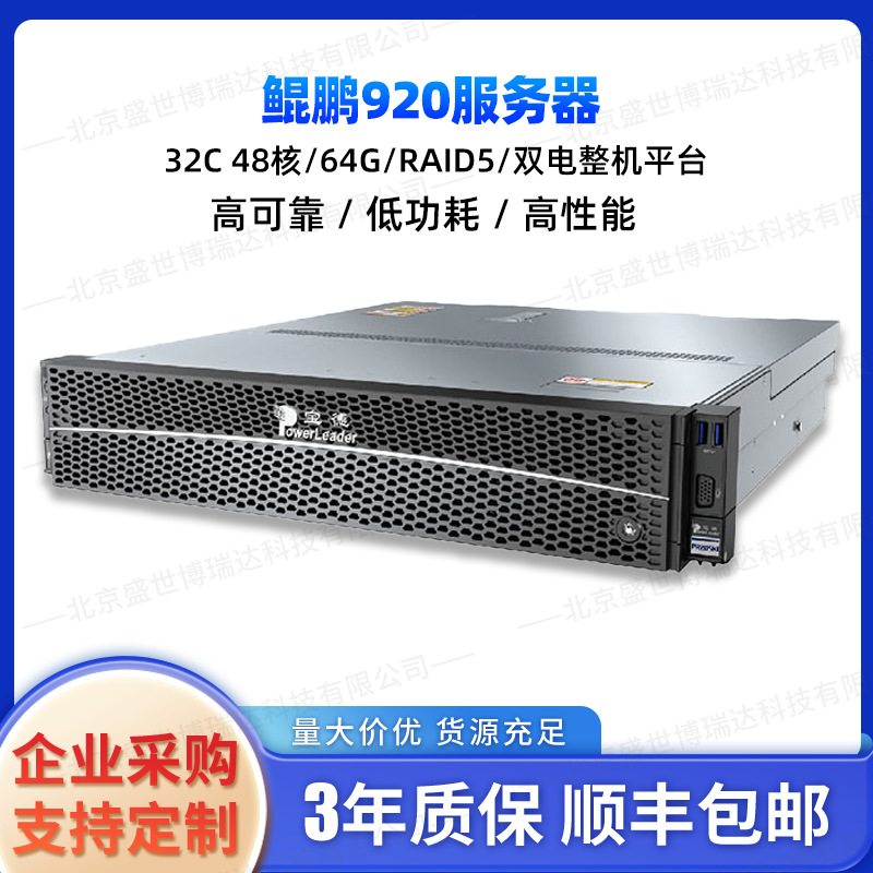 宝德鲲鹏920 5220服务器2颗32C 2.6G/64G/RAID5/双电整机平台