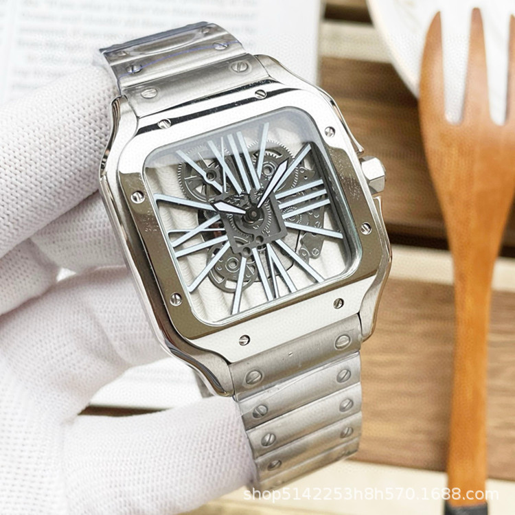 工厂货源方形表山度士手表同款罗马系列男表镂空石英316精钢表批