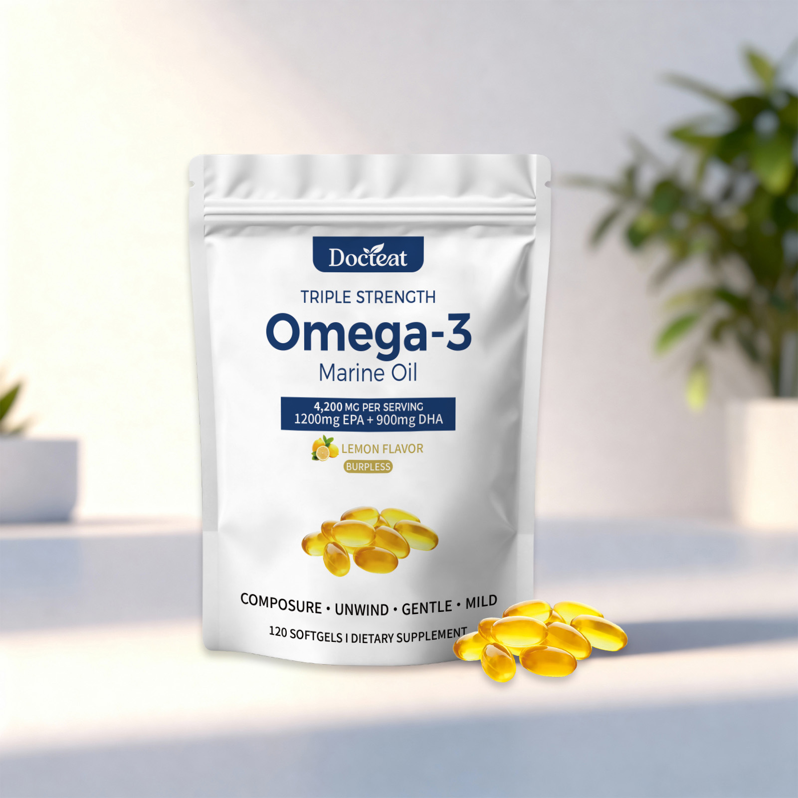 DOCTEAT Omega-3软胶囊 含Omega-3脂肪酸软胶囊口感温和易携带