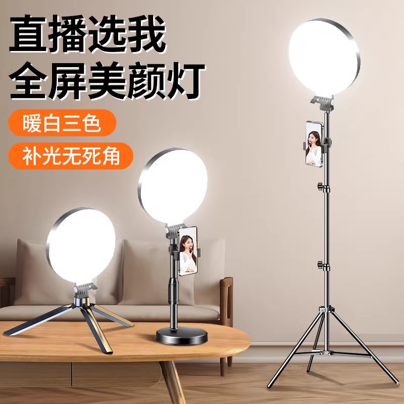 全屏无影补光灯直播灯光专业直播间专用主播手机桌面美颜打光灯面