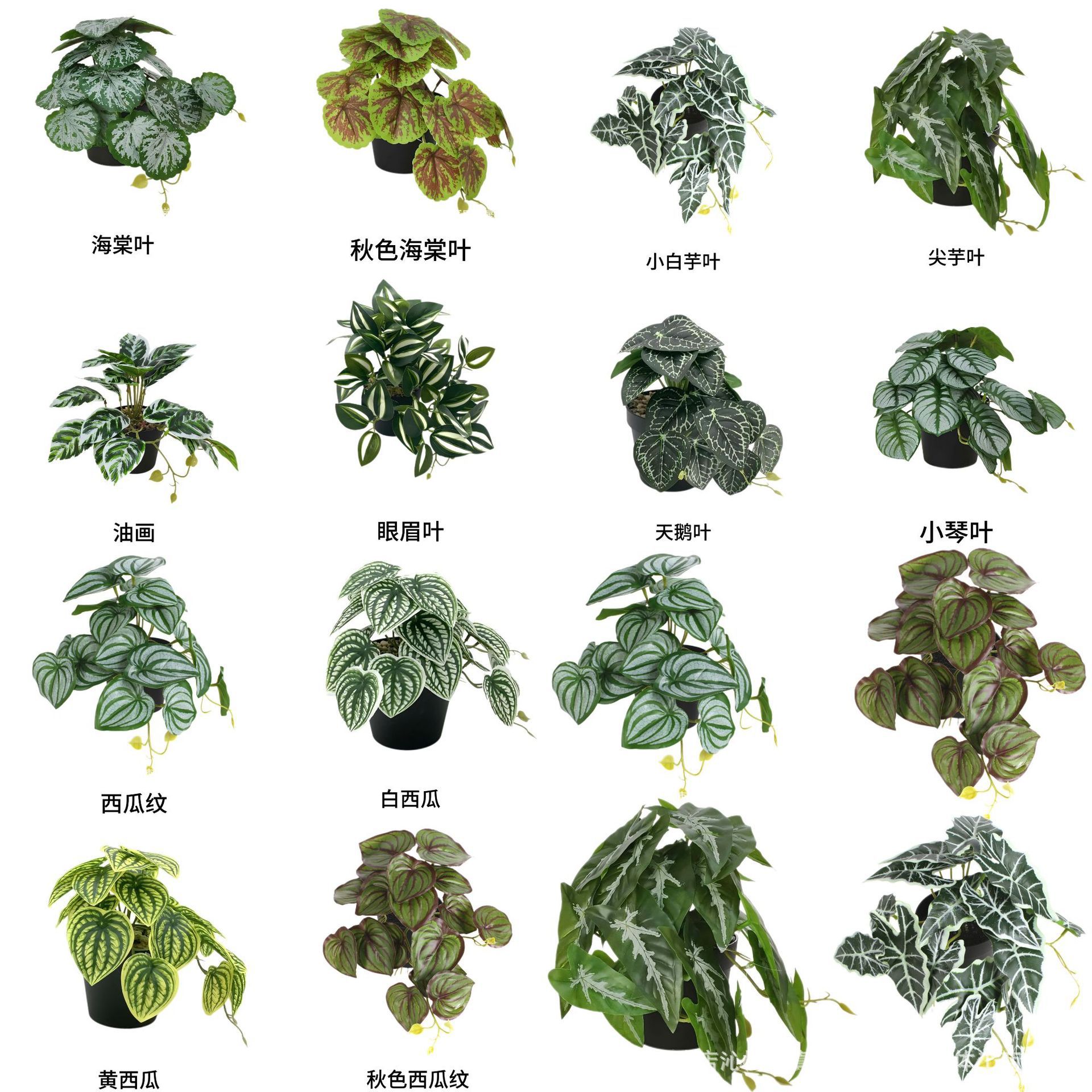 家居装饰品仿真绿植眼眉垂条盆栽矾根龟背叶假花盆景高仿真植物