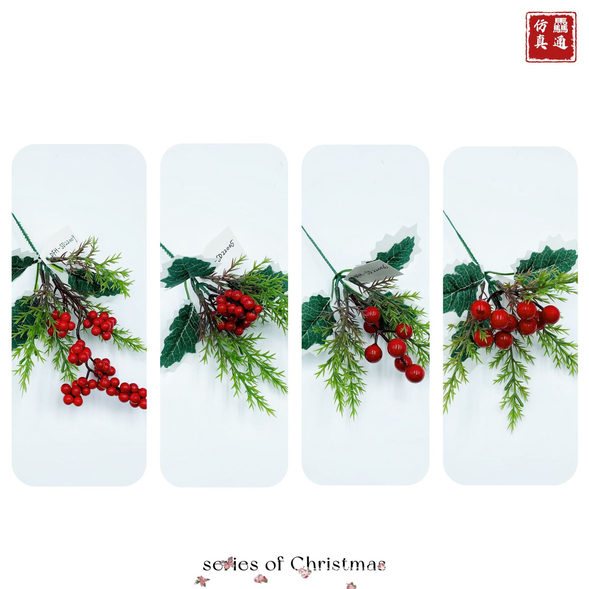 单支圣诞装饰插枝配件工艺礼品仿真浆果小红果跨境热销仿真花