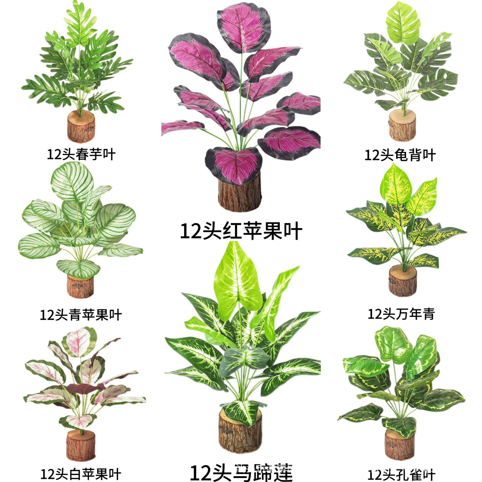 仿真植物绿植盆栽装饰假叶子龟背叶墙配件过胶手感叶高仿真仿真花