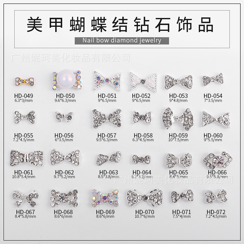 美甲饰品蝴蝶结美甲合金饰品珍珠镶钻蝴蝶结指甲美甲钻HD-049-072