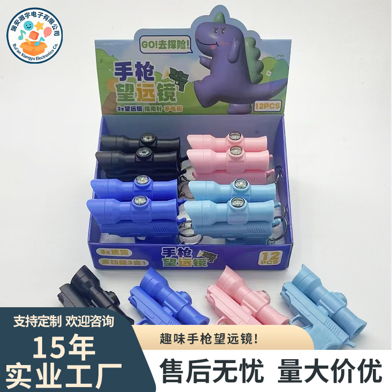厂家批发迷你钥匙扣挂件手枪望远镜小型便捷式儿童多功能合一带灯