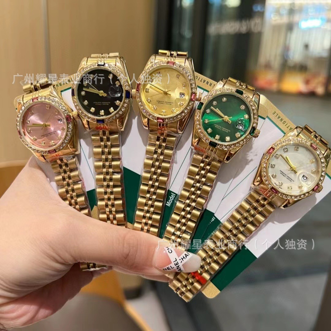 微商新款劳家日志28mm镶钻精钢时尚石英钢带女士腕表跨境外贸批发