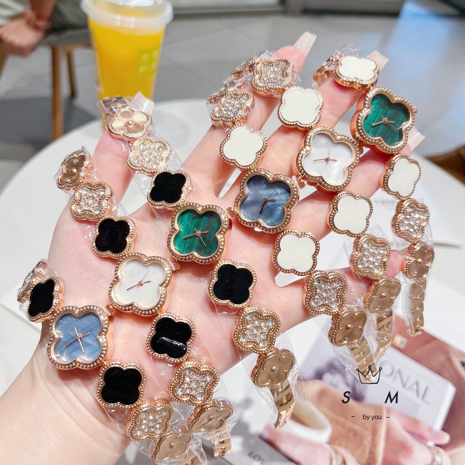 微商团购梵克家同款四叶草简约钻圈百搭石英女表批发钢带女士手表