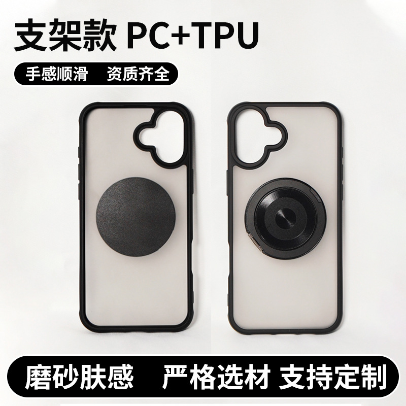 厂家供应PC+TPU磨砂肤感款黑色二合一带360度旋转磁吸支架手机壳