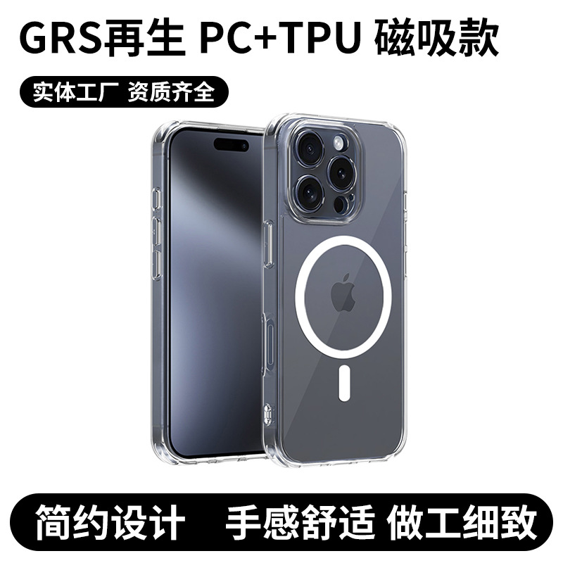 适用iPhone14Promax透明手机壳GRS再生 PC+TPU 磁吸款手机保护套