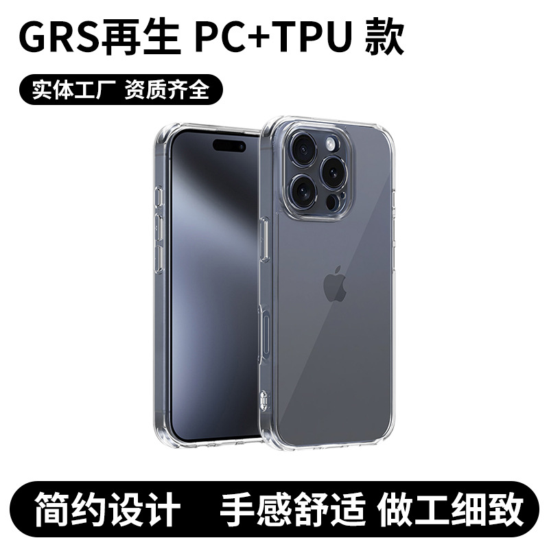 适用苹果16手机壳iPhone15promax透明硅胶GRS再生PC+TPU款手机壳