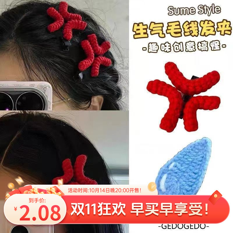 生气款头饰鸭搞怪发饰侧边愤怒水滴钩织毛线创意夹一字夹发夹包邮