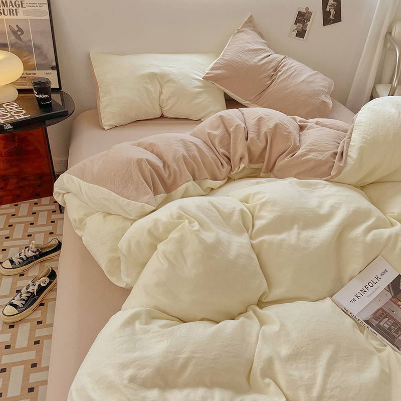 类母婴级加厚水洗磨毛床单四件套纯色被罩套学生宿舍三件套床笠