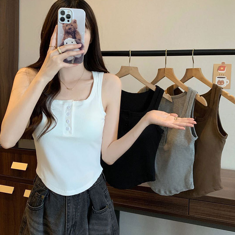 春夏季宽肩带纽扣背心内衣带胸垫固定杯防走光外穿内搭休闲上衣女