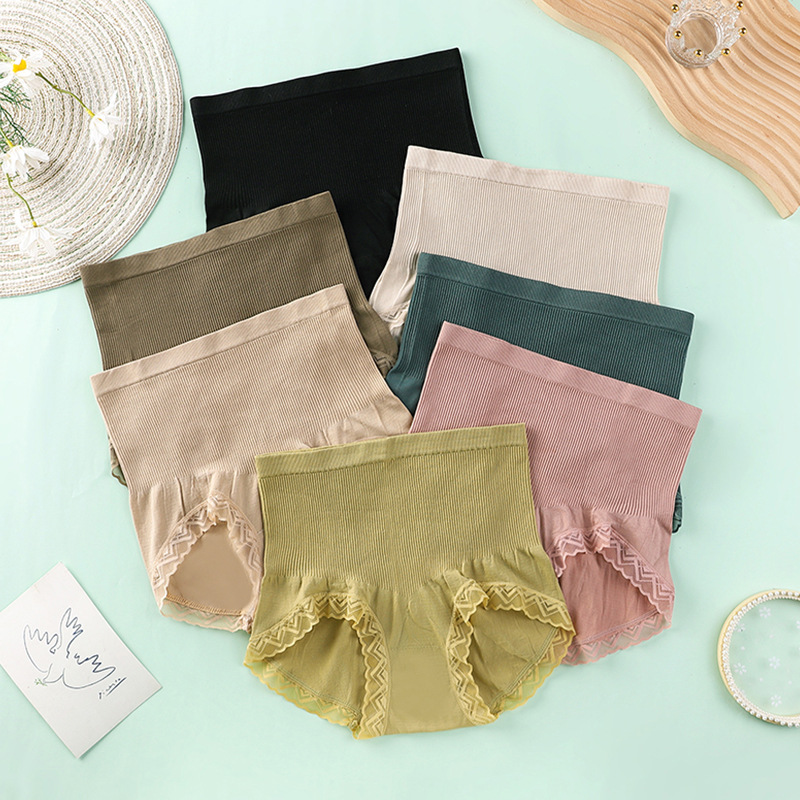 新款高腰收腹蚕丝蛋白绵绵裤女士塑身美体束腰无缝蕾丝边三角内裤