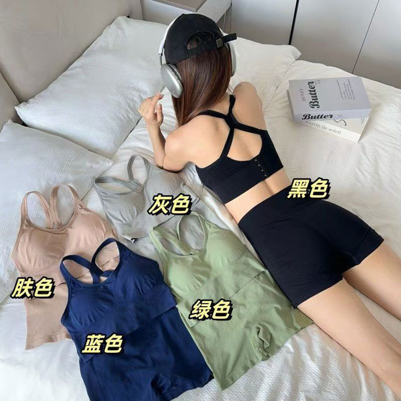 跨境款欧美无缝运动裹胸背心女健身跑步瑜伽文胸美背内衣内裤套装