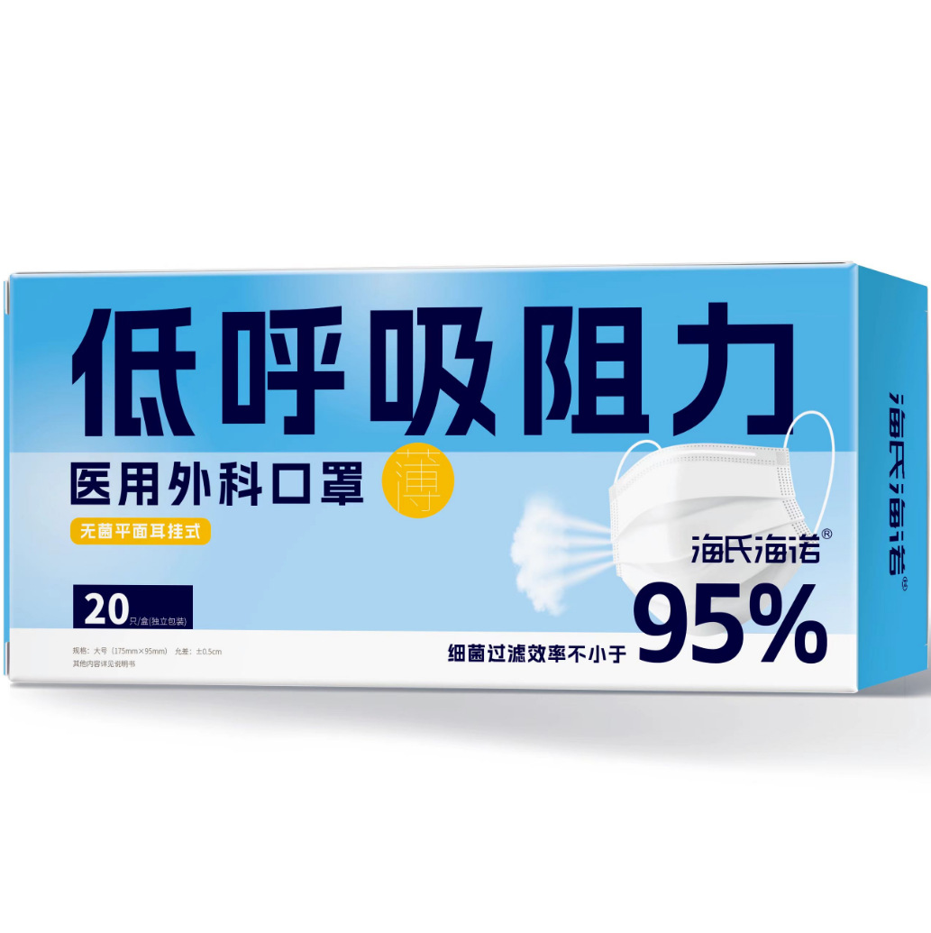 海氏海诺医用外科口罩三层防护成人款蓝色独立装无菌夏季薄款口罩
