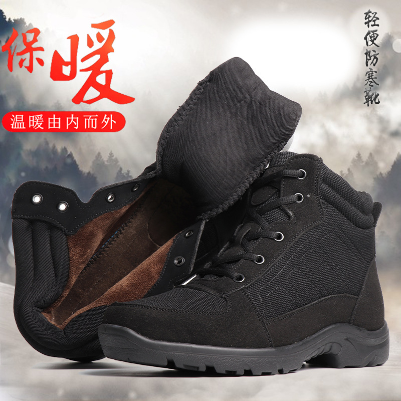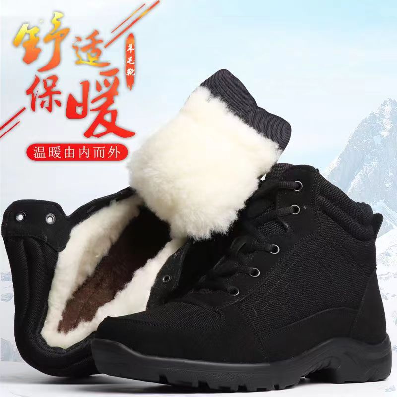 士兵毛皮鞋冬季加绒常服绒皮鞋防滑雪地靴男士防寒靴保暖羊毛棉靴
